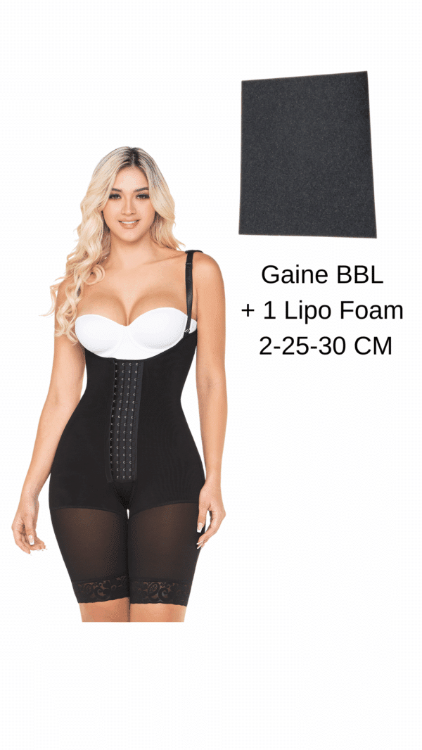 Cette gaine, fabriquée en Powernet revêtu de nylon au toucher froid, offre un confort exceptionnel tout en sculptant la silhouette. Avec sa conception adaptée, elle propose 4 niveaux de réglage au niveau de l’abdomen, un rehaussement des fesses subtil et naturel, des bretelles ajustables pour un ajustement personnalisé, et une ouverture périnéale pour une commodité optimale ainsi que deux bandes de silicone en sous de la dentelle des cuisses pour éviter que la gaine ne s’enroule pas.